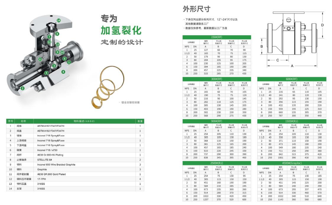 公称压力 | PN2.5~76MPa、ANSI CL150LB~CL4500LB |